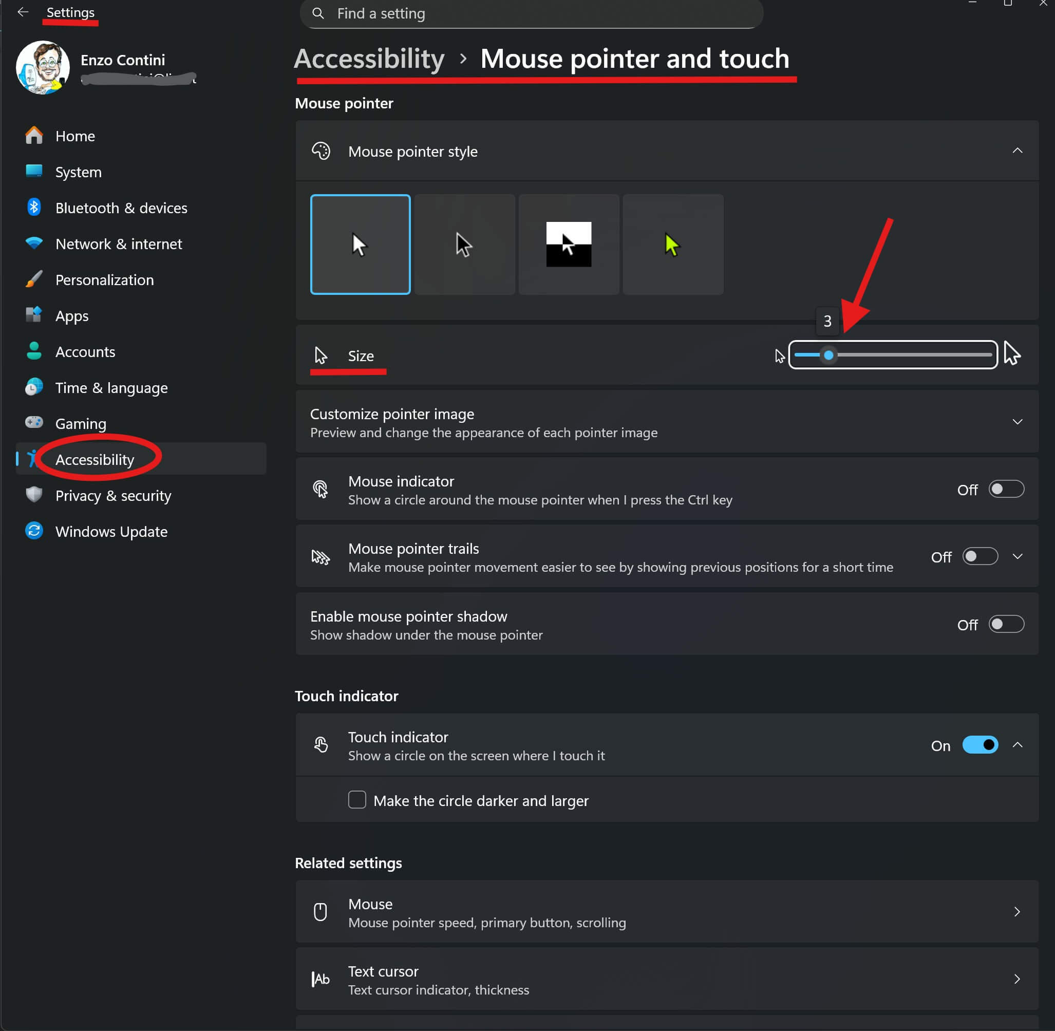 - cursore più grande