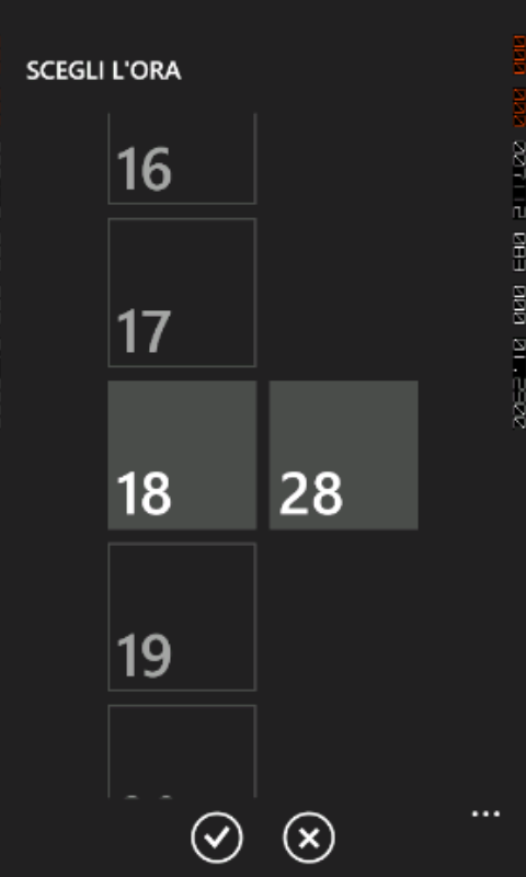 So in this case the TimePicker displays as follows [note that since toolkit’s November 2011 version, also that control is localized in the right way (with previous versions the localization had to be done by hand) and so CHOOSE TIME is translated to SCEGLI L’ORA]: