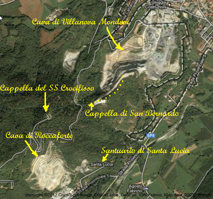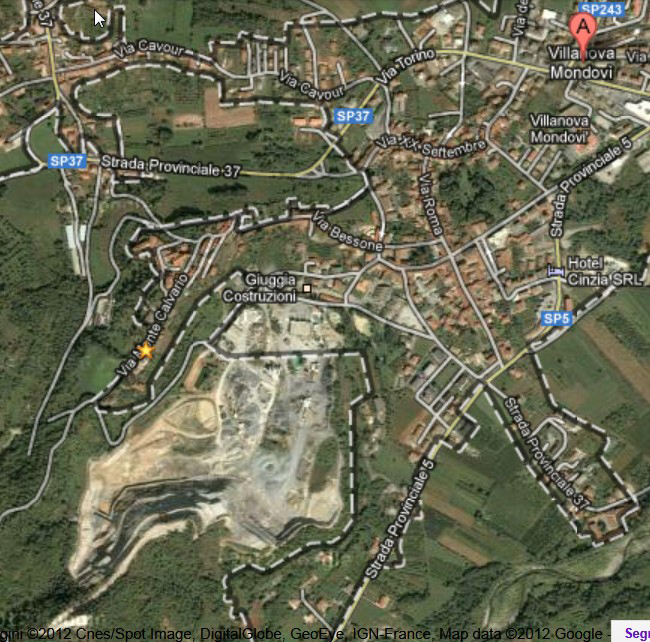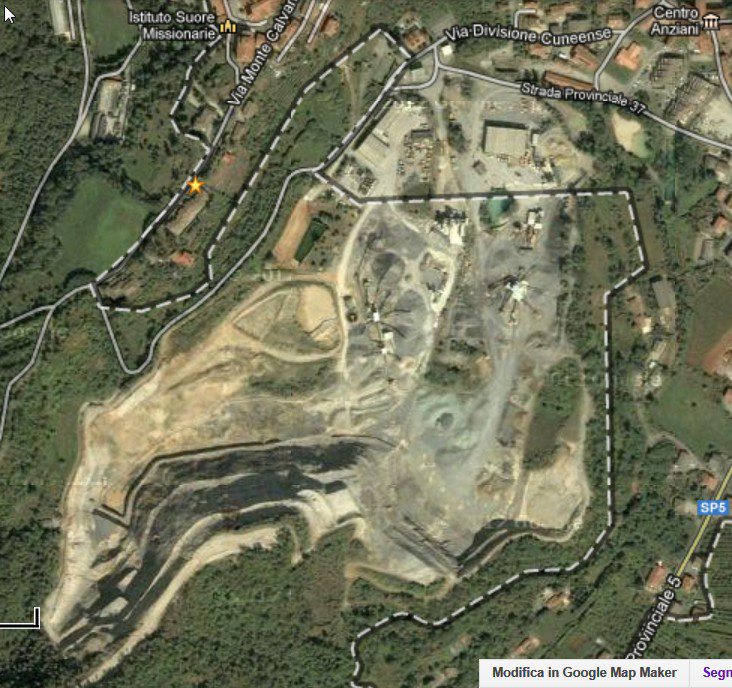 Neppure la cappella di San Bernardo ha saputo, un decennio fa (vale a dire all’epoca della richiesta dell’attuale concessione) fare il miracolo di arrestare questo scempio che ormai, per chi percorre la statale da Mondovì a Limone, è ben visibile anche direttamente dalla macchina … al punto che parlando con un collega che va a Limone in ferie, è bastato parlagli della cava per fargli capire subito dove si trovava Villanova Mondovì.