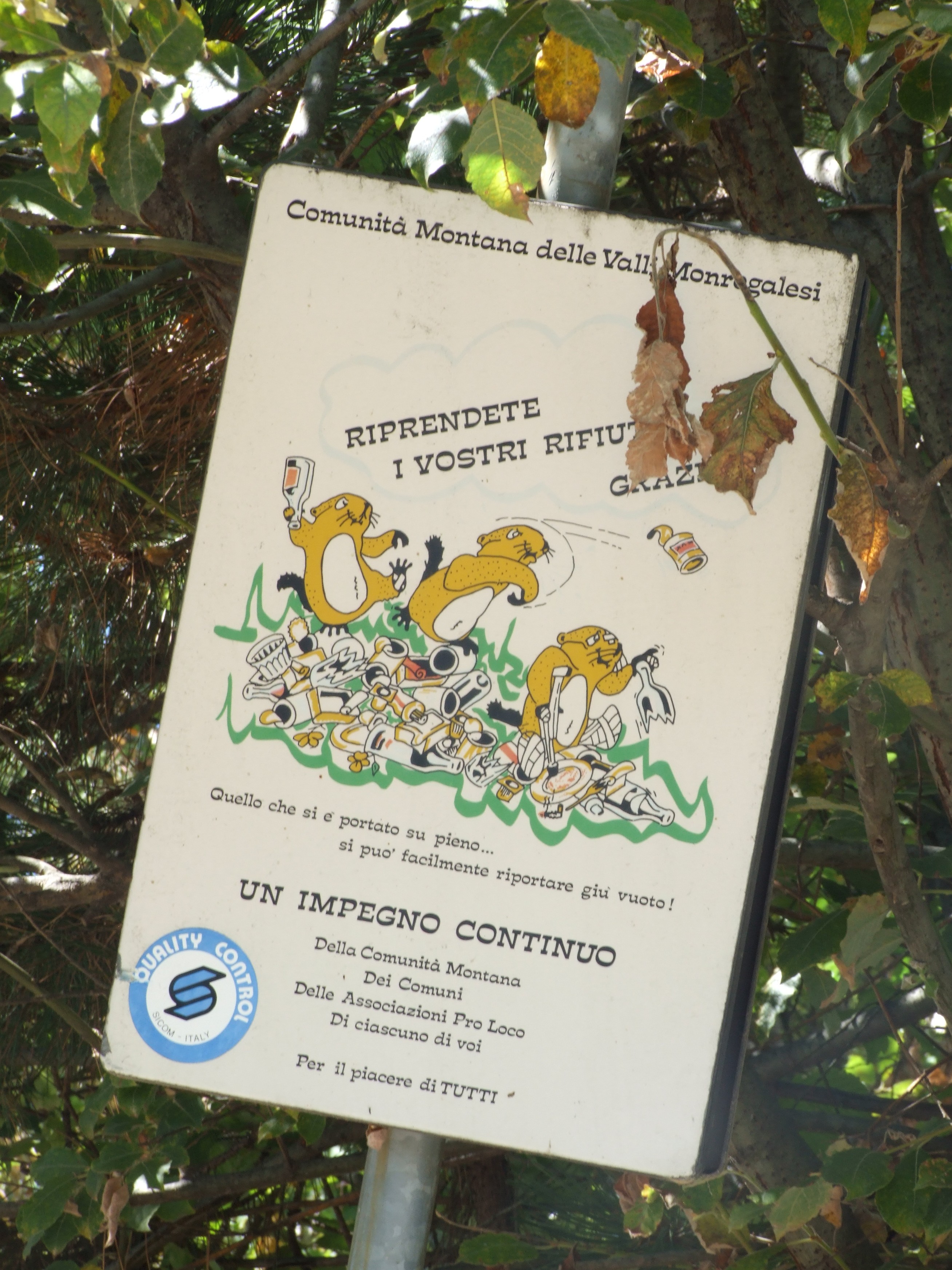 In cima a Monte Calvario, proprio accanto alla Cappella del S.S. Crocifisso, la visuale è questa … con relativo cartello della Comunità Montana delle Valli Monregalesi che afferma attuare un “impegno continuo”!!! Ci sono però diverse forme di “immondizia” … talvolta anche peggiori della cartaccia!