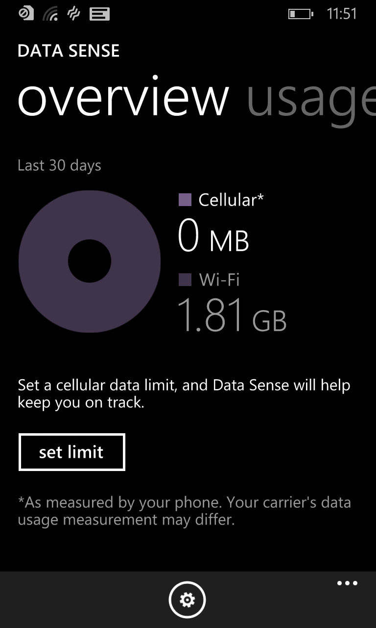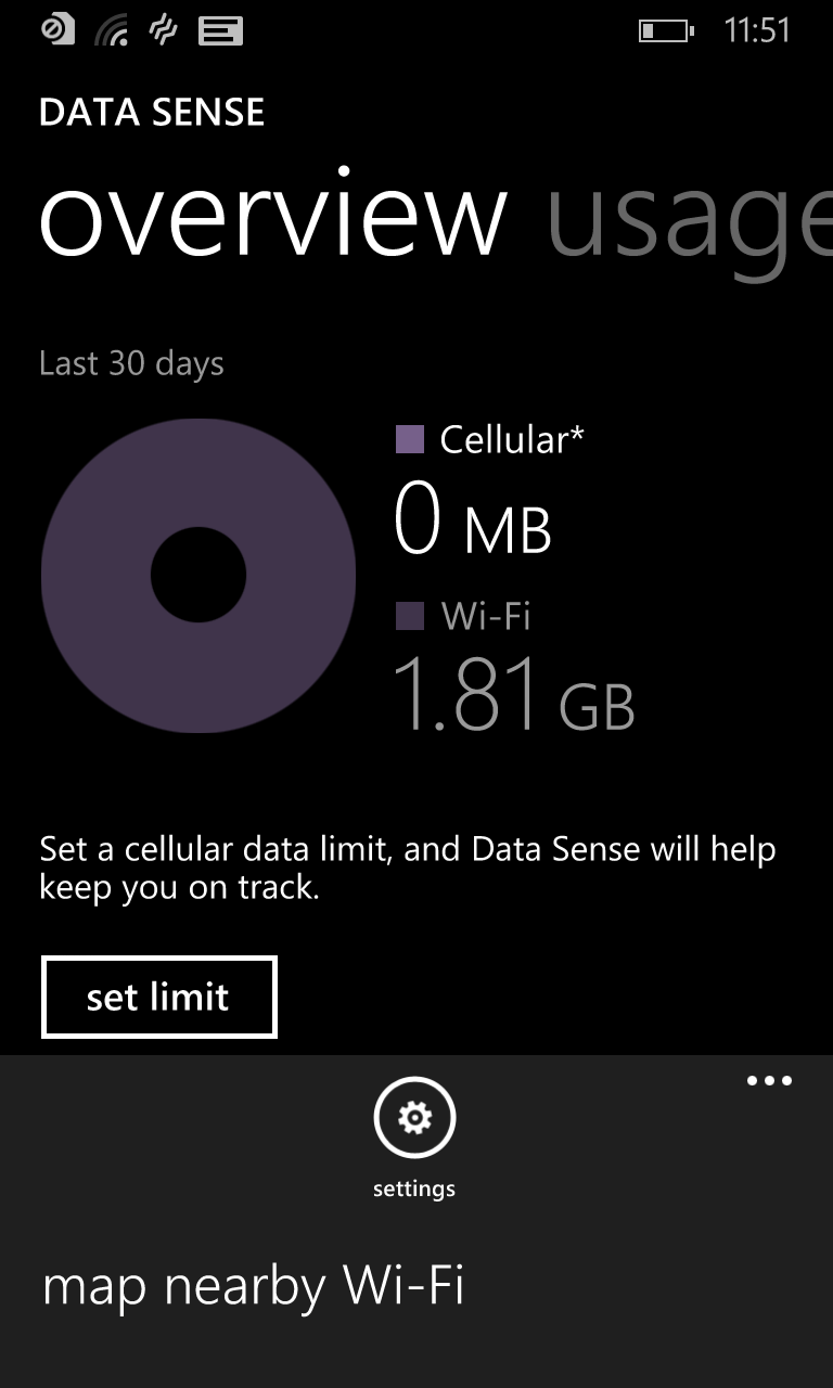Moreover, the new features is not integrated, at least in my phone, with the main setting page: if I go to settings -> data sense, I go directly to a specific page that allow me only to set a limit cellular data and display my usage, as you can see in the following figure: