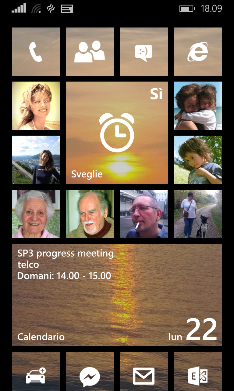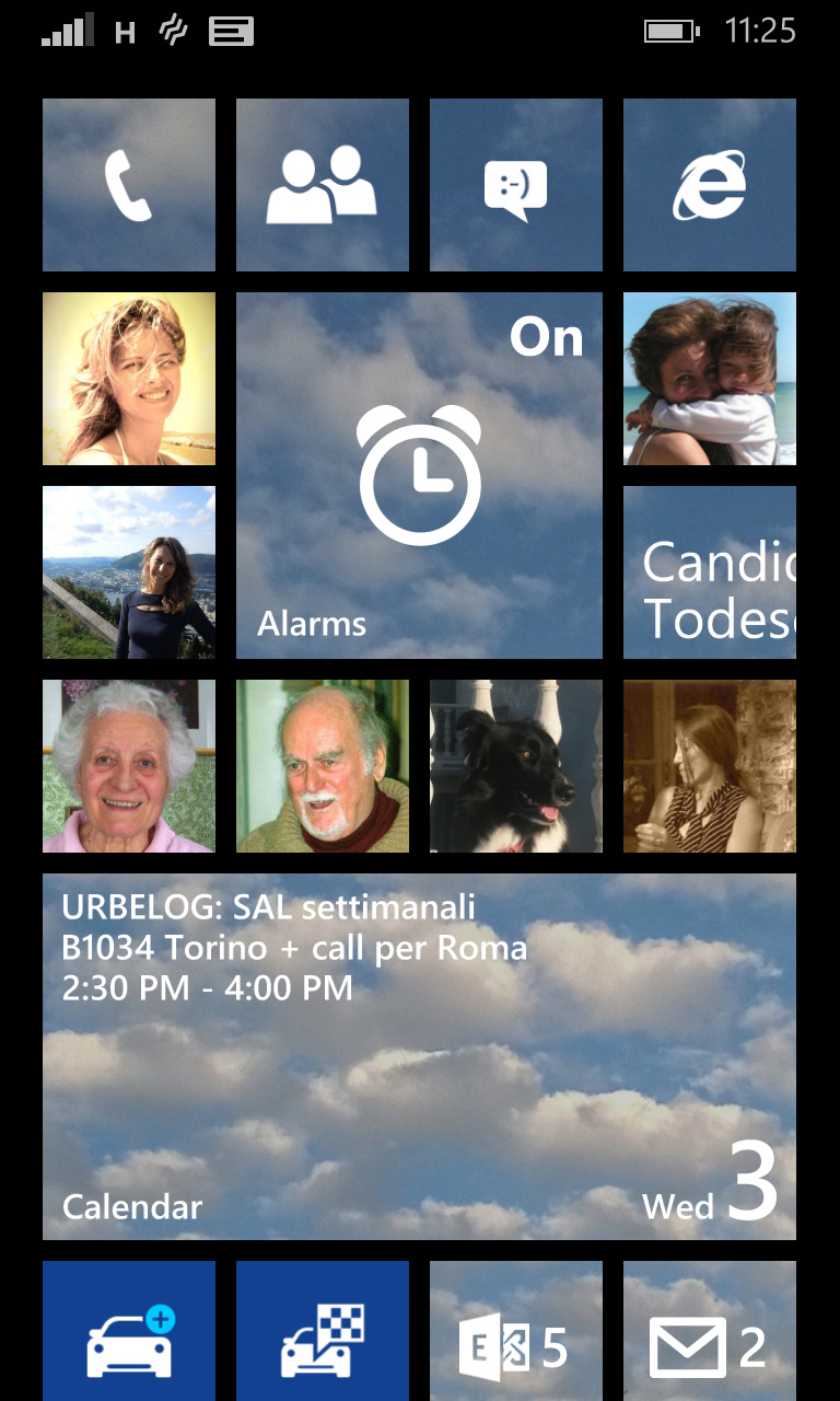 All the tiles mentioned till now, are always visible without the need to scroll the screen … and for me are the more relevant one, in order to see missed calls, new emails notifications, appointments, alarm set …