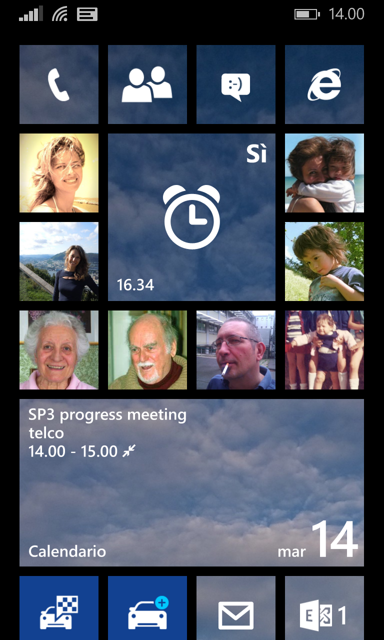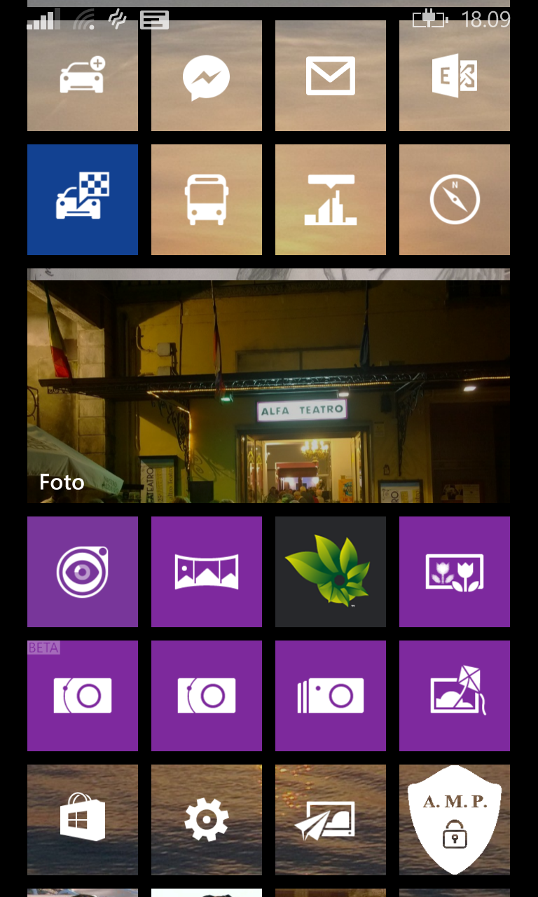 - Photos, that scroll in a random way in order to have the screen updated from time to time, all photographic app I usually need (I have a Lumia 1020 and I like to take picture with it).