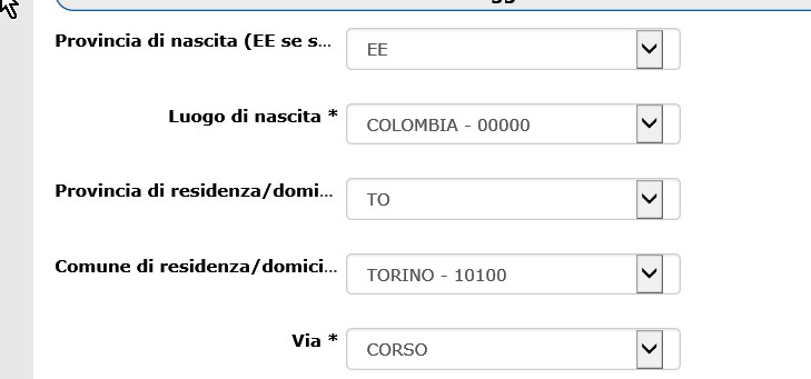 Trattandosi di un portale utilizzabile da una popolazione torinese alquanto multietnica e di provenienza estera, sarebbe assai conveniente che l’indicazione di selezionare EE come provincia di nascita (qualora il richiedente sia nato all’estero) fosse meglio evidenziata in una nota collocata opportunamente e sempre visibile interamente e su qualsiasi dispositivo utilizzato per la navigazione, … o, come alternativa ancor più opportuna e facilmente implementabile, sostituire l’attuale scelta “EE” con quella più esplicita “Stato Estero”, collocata opportunamente per renderla subito visibile (es. come prima opzione selezionabile).