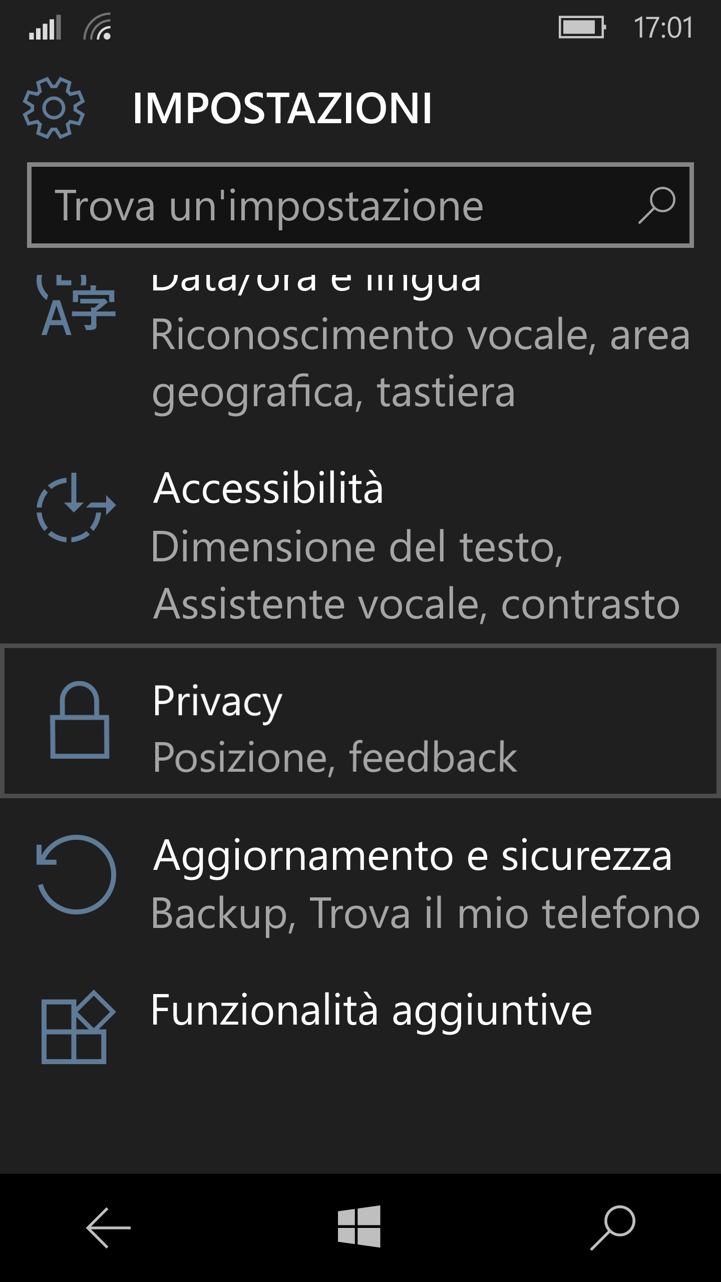 It would be very nice if in the future the Windows 10 Mobile will provide a specific functionality that, when activated, in background will check all the possible privacy concerned actions of the running apps, in order than the user can be better aware of what it is happening underneath. Anyway already now you can handle the list of apps that hare having access to some privacy information (e.g. your Contacts, your Position): if you go to Settings -> Privacy, you will see a specific section for each privacy concerned area. For example, clicking in the Contacts area link, you will see the list of all the apps you gave the rights to get your contacts … and you will probably find some that you wonder why (e.g. ilMeteo, Car Dash, Film & TV, QR code reader)!! So you better disable this right for some of them, if you like, and in any time you can change your mind going back to that section. May be you can even decide to uninstall some apps that requested “strange” permissions in order to be installed and possibly report them to Microsoft.