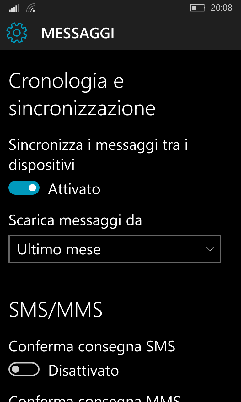 - Disable the synchronization of SMS messages among devices (Settings -> System -> Messages), otherwise all the SMS, both the sent and received one by all devices each one with a different phone number, will be listed in the Messages [IT: Conversazioni] page.