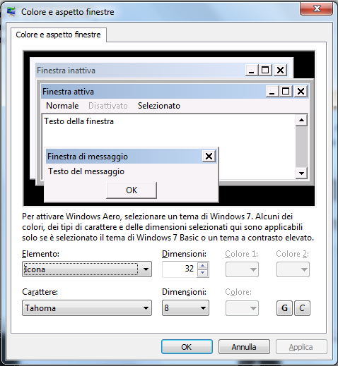 Una delle possibili modifiche del Carattere che può andare bene è, ad esempio il tipo Tahoma con dimensione 8. Dal menù a tendina selezionare quindi il Carattere Tahoma e quindi, a fianco, come Dimensioni inserire 8: per confermare tali modifiche premere, infine, il pulsante Applica o anche solo quello di OK.