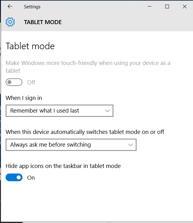 However, it could happen that using both those available methods, the Tablet mode cannot be enabled because the button/switch is greyed so it is not possible to interact with it.