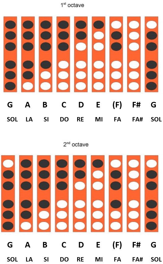 - Grigio: “Chiave secondaria” (e.g., il Whistle D suonerà facilmente anche nella scala di G Maggiore)