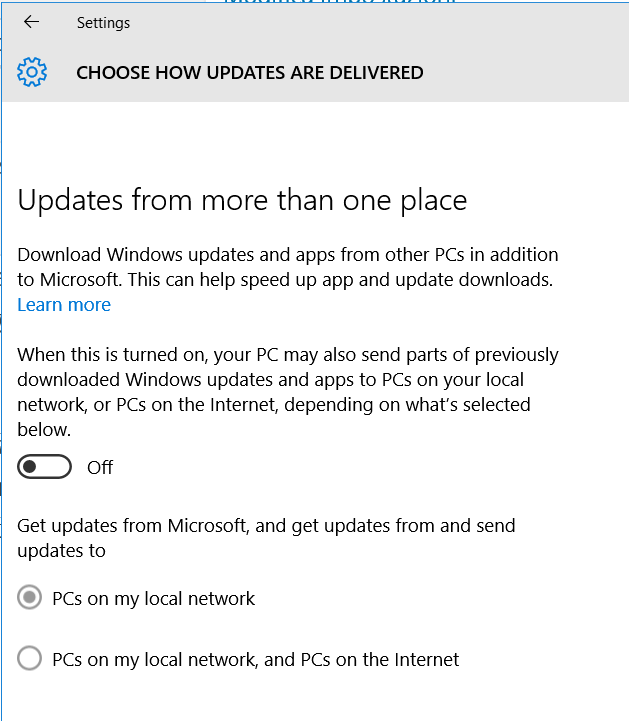 Settings -> Update & Security -> Windows update – Advanced Options – Choose how updates are delivered