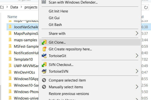 I had to clone a branch in a GitHub project (its uwp branch) and I couldn’t find a way to do that with the GitHub Desktop client I always used and so I used TortoiseGit that it is very similar to TortoiseSVN I am using to access to SVN repositories …