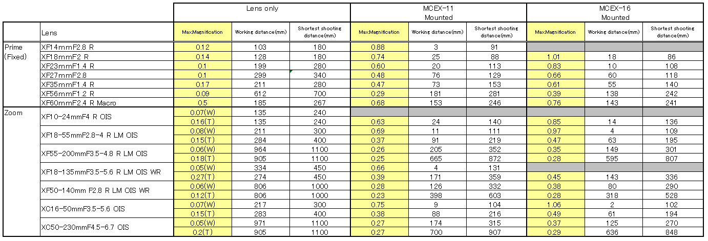 - Maximum Magnification of the Macro Extension Tube MCEX-11 and MCEX-16