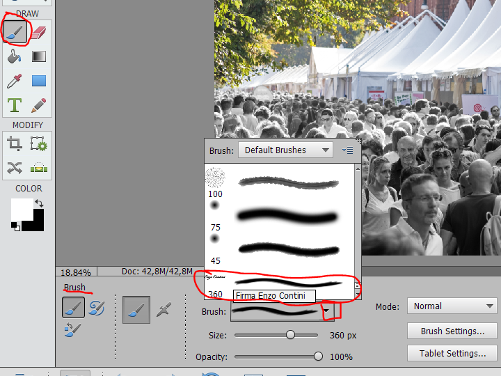 From now on, you will have listed your new brush among others ones and you can choose it every time you want to add your signature to a picture. Note that every time you can select its size, color and opacity as you like …