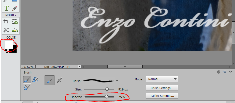 P.S: if you set the Background to White the brush will not be transparent all around the signature. - Select in the left tool bar the Horizontal Type Tool (T) and spend some time choosing the font you want to use in your signature and write your name. I suggest you to choose a font that simulates the handwriting (so named with the term “script” or “handwriting“) like Bickham Script Pro Regular (bold and italic), Brush Script Std Medium (bold and italic), Bickham, Vladimir Script Regular (bold), Rage Italic Regular (bold), Brush Script, Brush Script MT Italic, Bickham Script Pro Regular, Caflisch Script Pro Regular, Segoe Script Bold, Script MT Bold Regular, Rage Italic Regular, Kunstler Script Regular, Palace Script MT Regular, Vladimir Script Regular, Lucida Handwriting Italic, Edwardian Script ITC Regular, Rage Italic Regular or also some others like Mistral Regular, Giddyup Std Regular, Curlz MT Regular, MT Italic Bell MT Italic, Adobe Garamond Pro Italic, Magneto Bold, Garamond Italic, Gigi Regular, Freestyle Script Regular, French Script MT Regular, Parchment Regular. The choice, anyway, is a matter of taste.