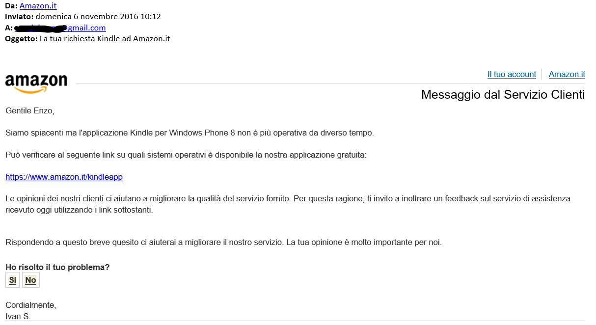 Some days ago I installed the Amazon Kindle app available in the Windows Store on my Windows 10 Mobile smartphone device. Trying to log in, it was always displayed thet my credential were wrong, even though I was sure they were correctly inserted.