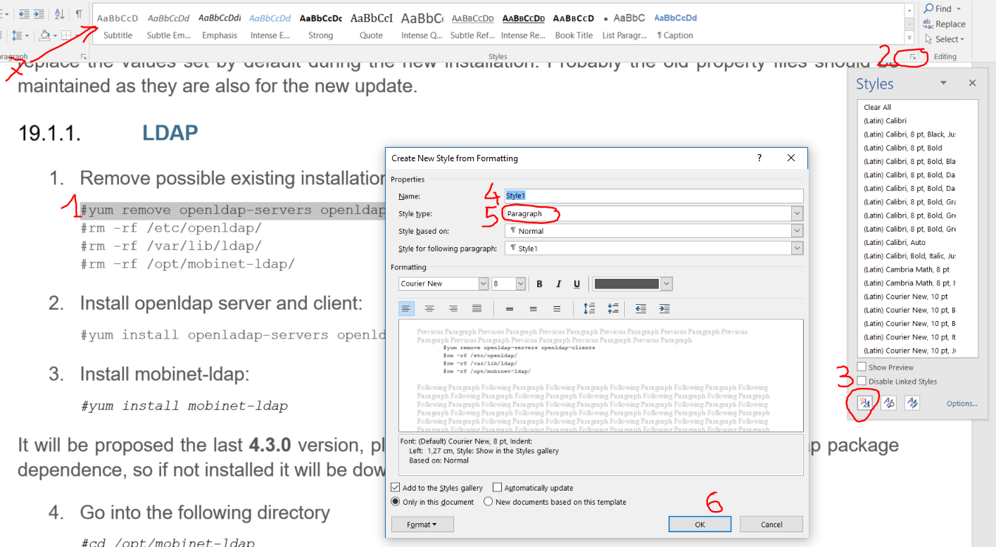 - Be sure that the Style type is Paragraph (otherwise click on the Format button on the lest bottom and select Paragraph).