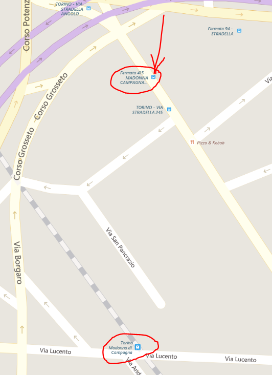 Torino Madonna di Campagna – Fermata 415 /416 per gli orari per cui per GTT c’è il bus e non il treno (fermata analoga al bus SADEM)