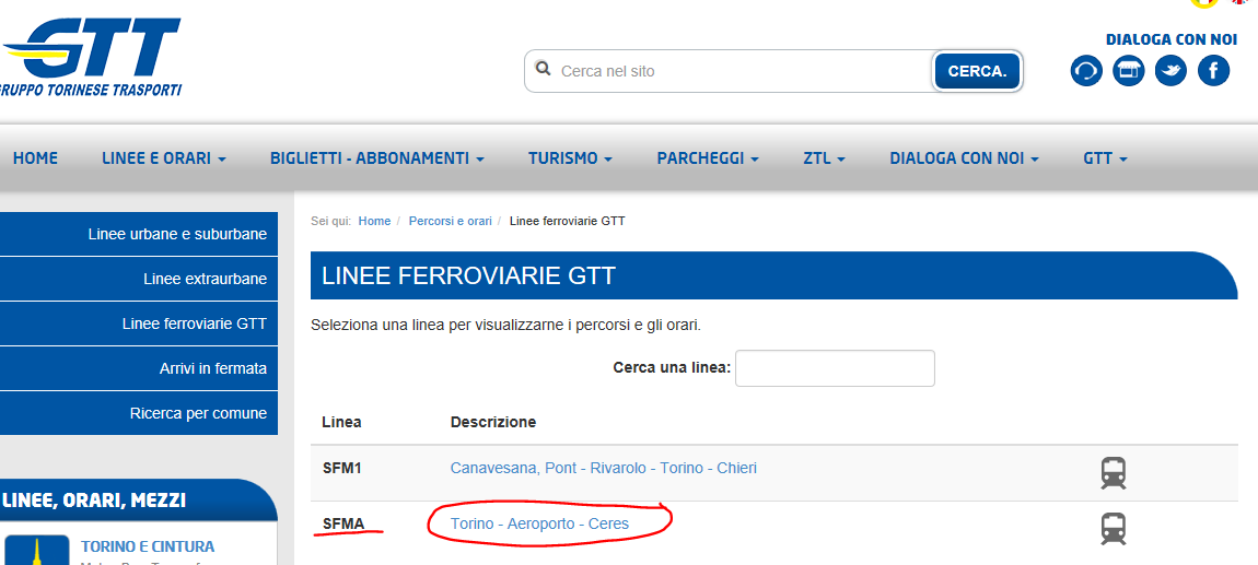 Questo link, poi, consente di avere solo una visione degli orari purtroppo solo per ciascun percorso selezionato (e.g. sfma DORA-GERMANIANO, sfma DORA-CIRIE’) per cui non è agevole capire quali sono tutti i passaggi verso l’aeroporto da una specifica stazione: la cosa migliore è quindi selezionare la fermata specifica che interessa e vedere i passaggi presenti in quella stazione (nota: conviene verificare comunque sulla tabella orari completa, dal momento che, anche se raramente, alcuni treni non fermano alla fermata dell’aeroporto!).