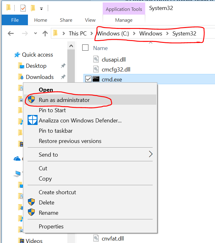 - First you have to run the command prompt (available in C:\Windows\System32) as an administrator and go to the directory where there is the certificate file and the command file