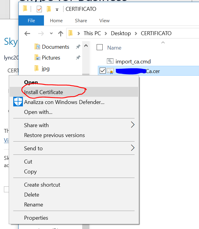 Sometime to use Skype for Business in an intranet there is the need to install a firm certificate: it may even happens that Skype for Business works when your PC is connected to Internet (if you have required the proper rights) even without installing the certificate but that is required if you are connected to the intranet!