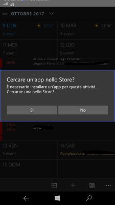 As you can see from the following screenshots, the first time the user click on that bottom menu To-Do item, he is asked if he wants to choose in the Store an app that implements that activity. Currently there is only one app in the Store that implement that URI schema (Microsoft To-Do, available also in the Apple Store and in the Google Store) but whatever app that implement that custom URI Scheme could be attached to improve the Calendar app features.