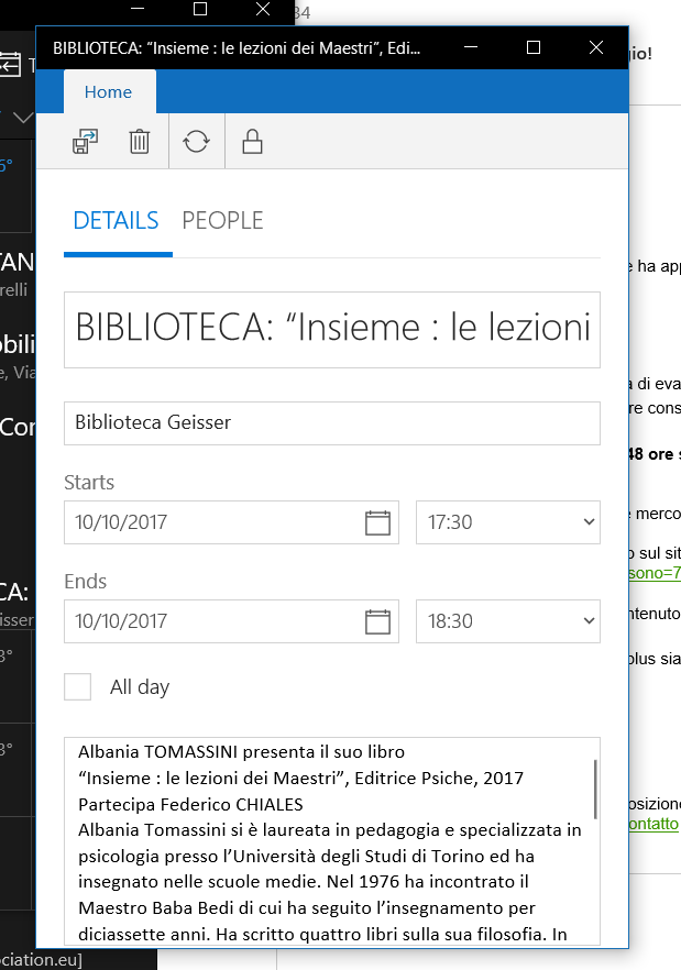 Moreover, after a while (the day after?) an event, inserted from Outlook Calendar from an Android smartphone, cannot be modified anymore neither by the same user and the same device!! This last “feature” (or better bug) is very annoying!!