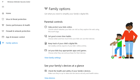 Manage of activity of children, such as limiting screen time, viewing activity reports or finding their device locations on a map