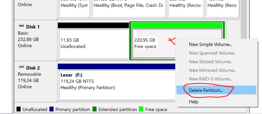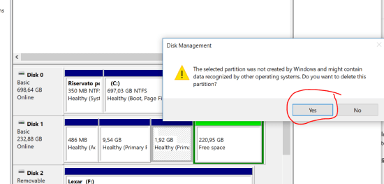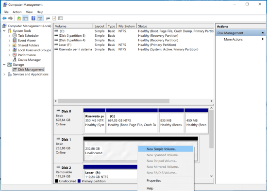 Sometime it may happens that you want to use an HD recovered from some other PC, possibly a not Windows one (e.g. Linux). When you connect it via USB port using a Hard Disk Docking Station, it may happens that that HD is not visible in the file Explorer of Windows 10 because corrupted or because the existing partitions are not the ones expected by Windows 10 and therefore you need to delete them all and then recreate a new NTFS volume.