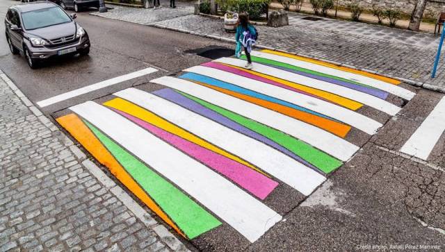 Nel sito youreduaction.it ho visto questo bell’esempio di trasformare alcune strisce pedonali di Madrid tramite il progetto “Funnycross” di riqualificazione urbana per trasformare le strade in opere d’arte a cielo aperto: al momento ha interessato ben 13 attraversamenti pedonali di Madrid: resta da capire se la burocrazia legislativa italiana possa consentire agevolmente operazioni analoghe facendo rientrare queste iniziative nel codice della strada che definisce in modo alquanto preciso cosa si intende per strisce pedonali (per cui si rischierebbero controversie in caso d’incidente).