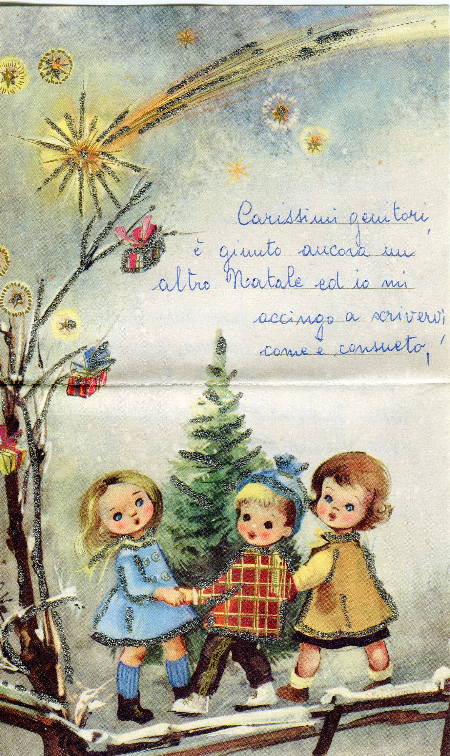 Ho trovato questi auguri di Natale tra i documenti conservati da mio padre: oltre che ad avere un valore affettivo, penso evidenzino molte bene i cambiamenti della nostra società e dei costumi … e quindi siano degni di essere inseriti in un post in prossimità del nuovo Natale!
