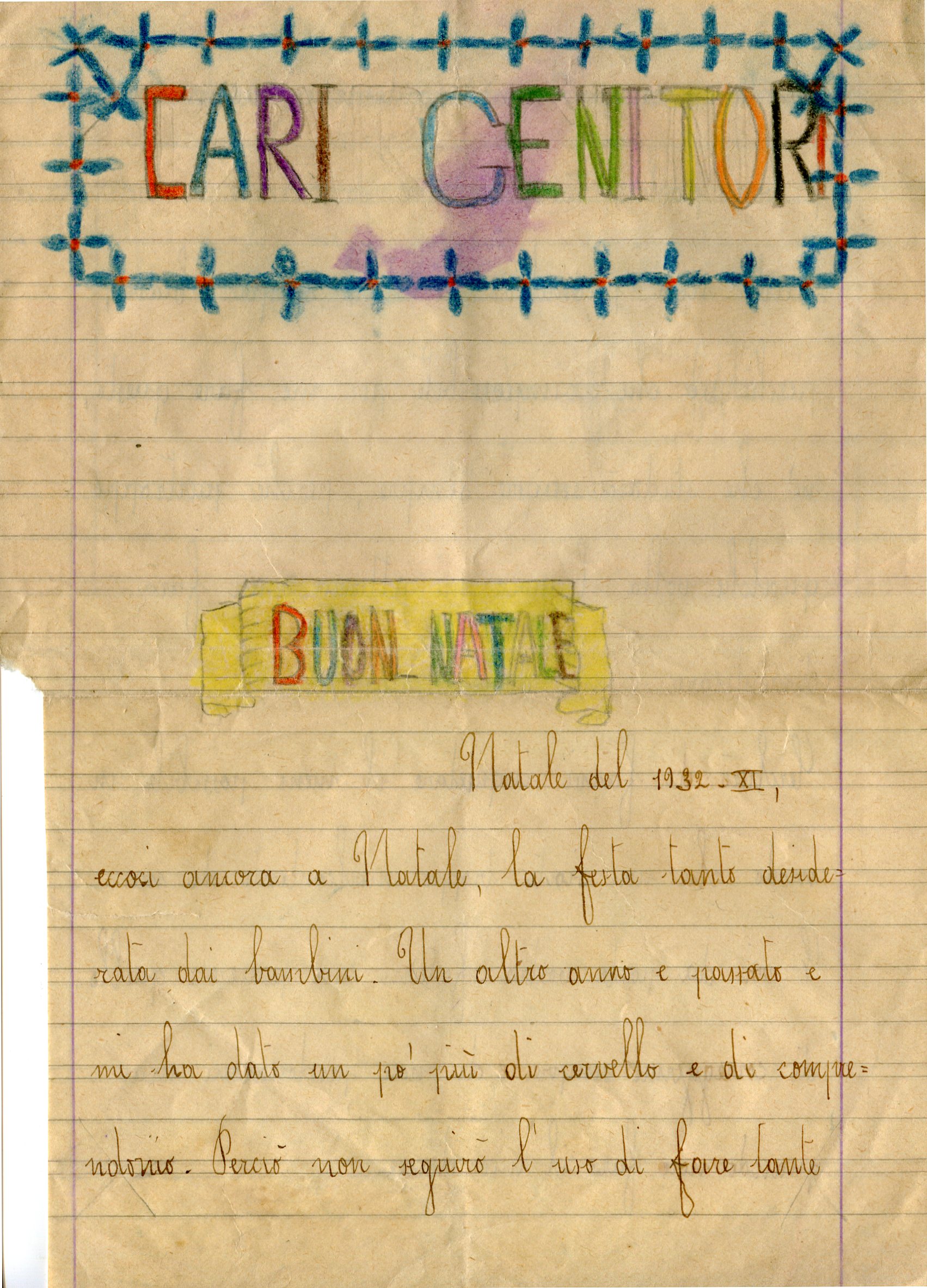 Passiamo quindi ad un salto generazionale, siamo all’inizio degli anni ’30 … ecco la letterina di uno zio che purtroppo non ho potuto mai conoscere ma di cui porto il nome: