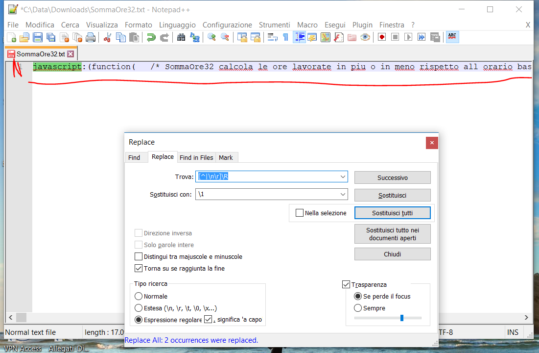 This can be done in many ways but an easy one is the following, using the free Notepad++ editor that can be downloaded from its site. It is not so good as UltraEdit but it is free!!