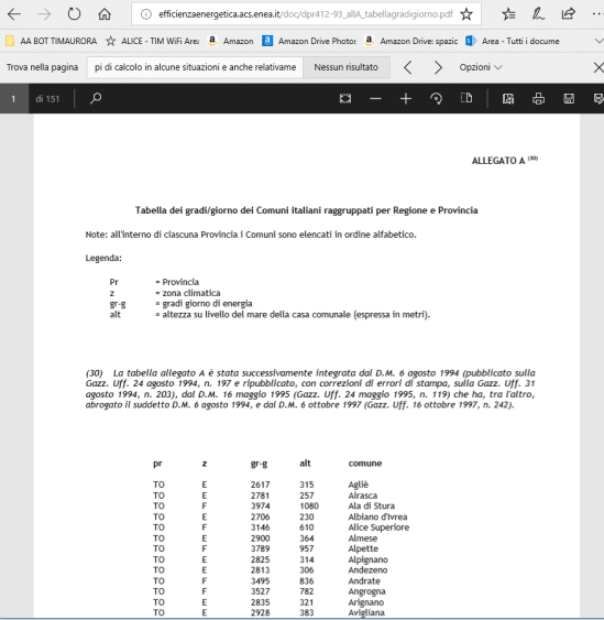 OK, OK, … forse bastava mettere subito e solo il link al seguente file che riporta i Gradi Giorno di tutti i comuni d’Italia (che ho trovato casualmente cercando “Gradi Giorno GG Torino” con un motore di ricerca): dpr412-93_allA_tabellagradigiorno.pdf