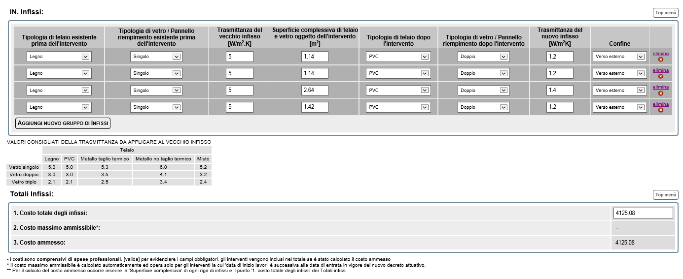 Questo calcolo deve essere fatto per ciascun infisso, tenendo conto che probabilmente cambiano sia la sua superficie sia la trasmittanza, pur essendo del medesimo materiale/produttore.