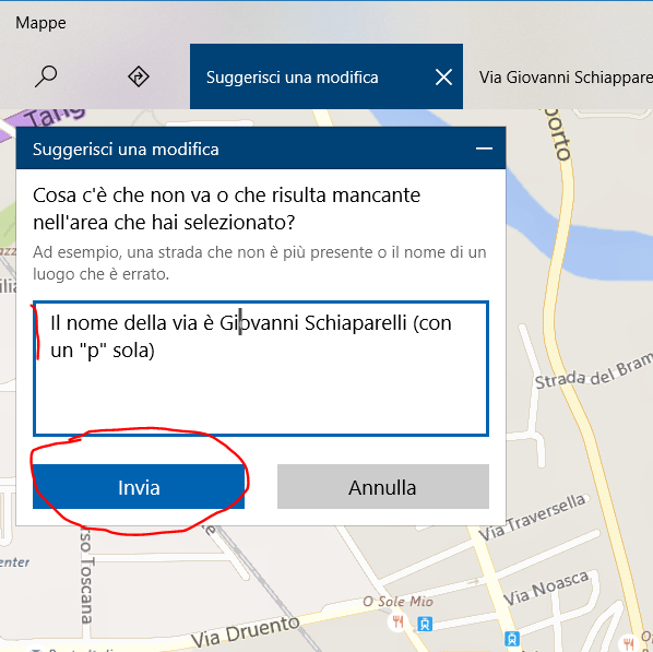 It may happen that the name of a street you know well is not correctly written on a Bing Maps site or in the Microsoft Maps app.