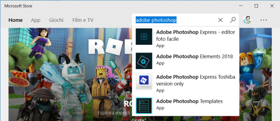 I bought, some months ago, the Adobe Photoshop Elements 15 app from the Microsoft Store and now, that I have a new Surface, I tried to get and install it again. However, when I did a search for “Adobe Photoshop” in that Store, I could not find anymore that version: now there are available for downloading only Adobe Photoshop Express – easy photo editor, the free lite version for PC and smartphones, and the new Adobe Photoshop Elements 2018, for a not irrelevant fee (99,99, currently on offer at 69,99€)!
