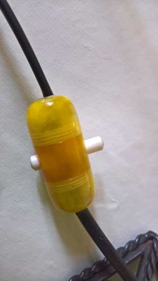 Proteggere quindi ciascuno dei due avvolgimenti con un morsetto elettrico a cappellotto ed inserire il tutto ben dentro l’ex-contenitore dell’olio.