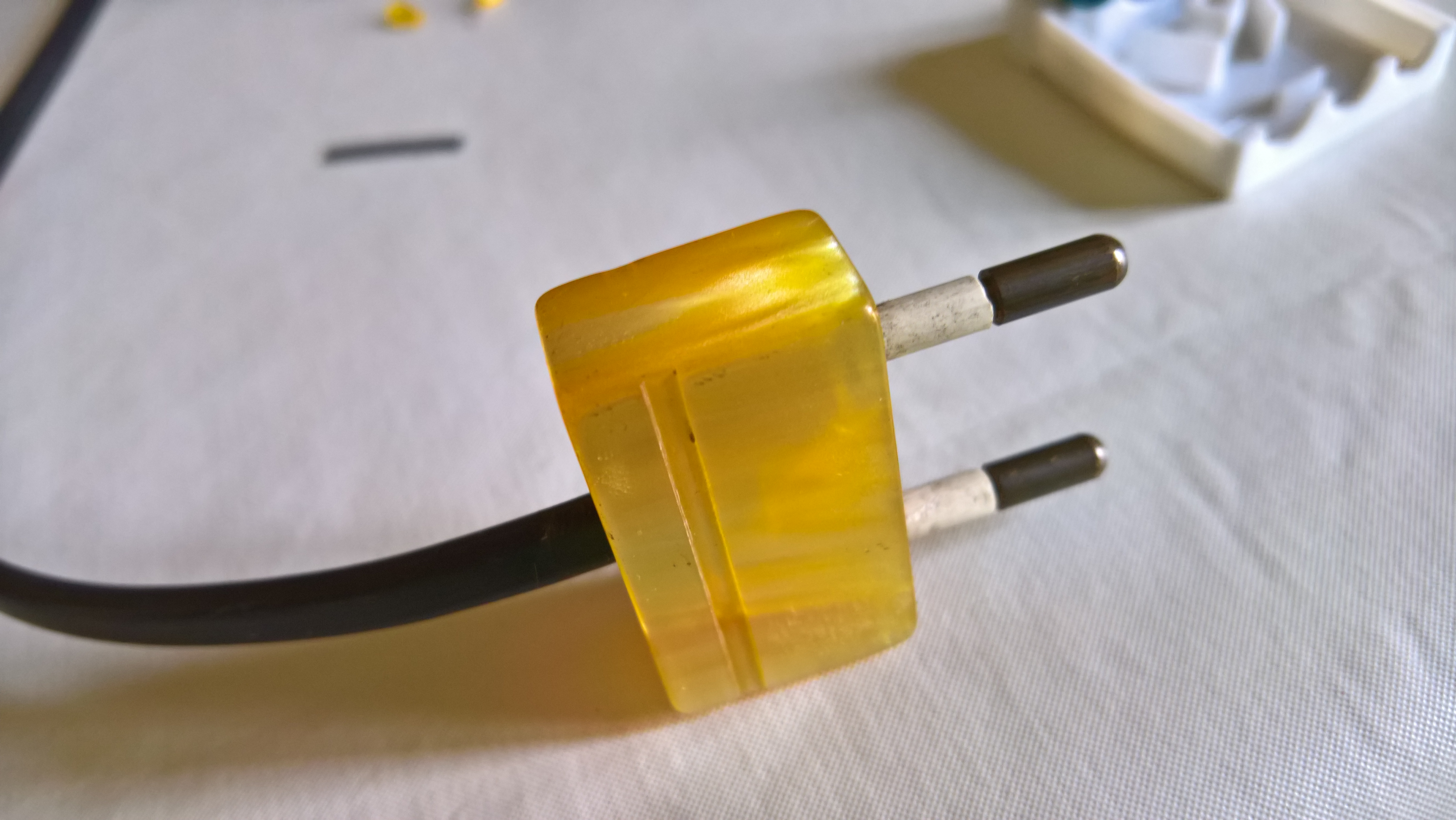 Passo 8 – Montare la spina. Anche in questo caso qualsiasi spina può andare bene, meglio ovviamente una in stile antico che si abbini all’interruttore. Alcune di queste ultime richiedono un montaggio un po’ particolare, come mostro in una delle immagini seguenti.