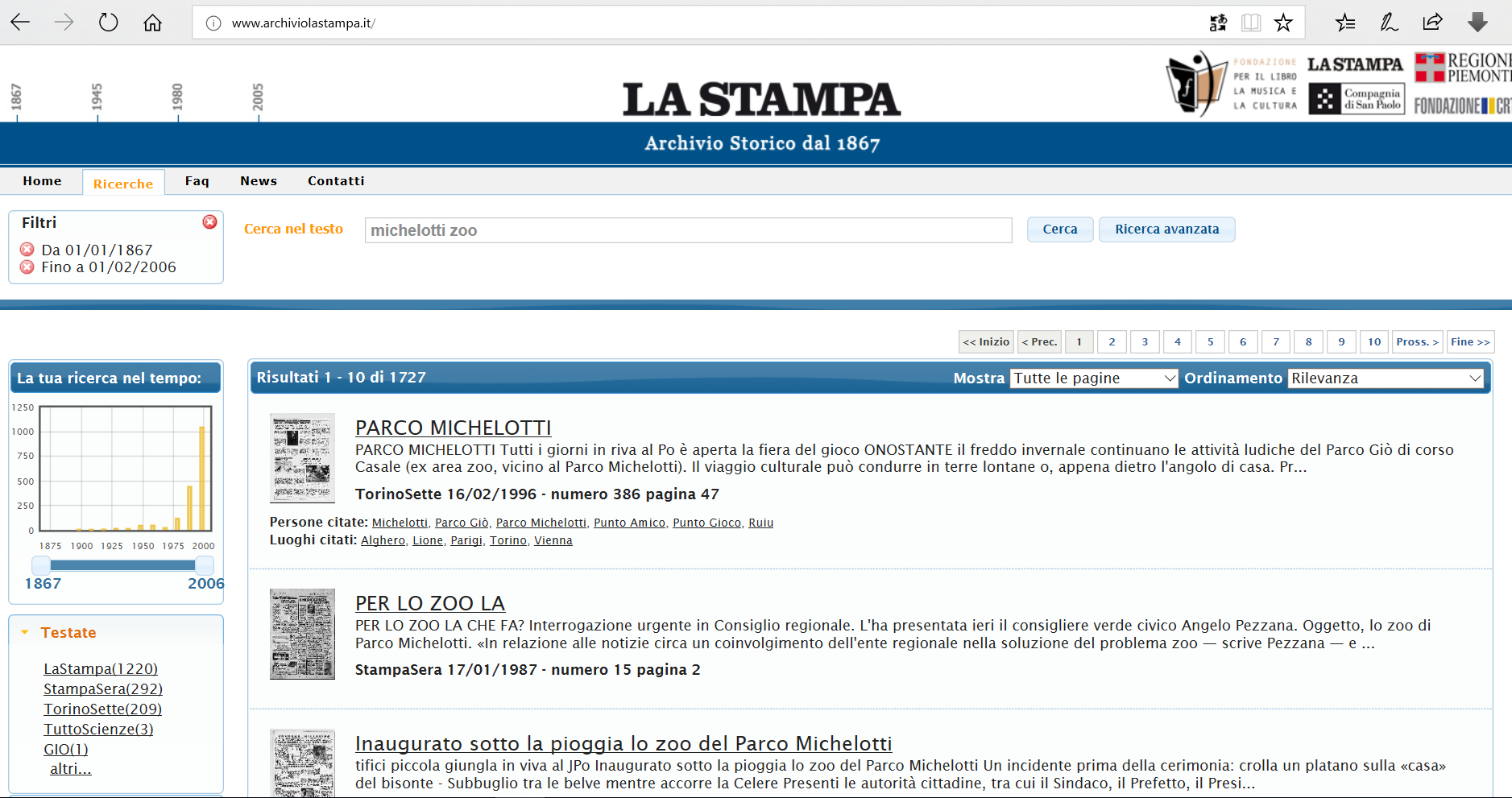 Non si può poi non indicare come enorme fonte di informazione il bellissimo archivio storico de La Stampa dove è presente la digitalizzazione delle testate del giornale dalle sue origini (1867) fino al gennaio 2006: peccato che non abbiano proseguito poi nei successivi anni, dove sicuramente sarebbe anche stato più agevole l’archiviazione, essendo il giornale sicuramente già in forma digitale.