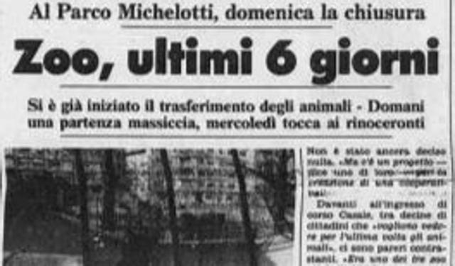Rimangono 6 giorni alla chiusura dello zoo che era stato aperto 31 aa fa (1956): dice il direttore: «Ricordo quando, il 20 ottobre 1955, i giornali con orgoglio lo chiamavano La città zoologica e lodavano il progetto avveniristico dell’ing. Gabriele Manfredi …»