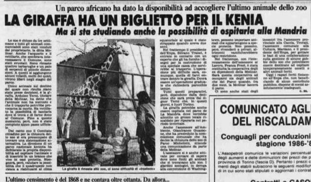 Ma gli animali che fine hanno fatto? Scrivono: «Che fine hanno fatto gli animali dello zoo di Torino?». La risposta è in tre pagine dattiloscritte conservate negli archivi del Comune; ed è una risposta che non può raccontare storie di libertà riconquistata: uscire dalla gabbia, tornare nell’habitat naturale, avrebbe significato per molti di loro andare incontro a morte certa. Ormai incapaci di cacciare, se mai lo sono stati, finirebbero per soccombere nella lotta per la sopravvivenza. Ma vediamo dove sono andati a finire. Ricordate i due elefanti indiani? Tra gli ultimi a sloggiare, sono ospiti dello zoo di Berlino Ovest; i tre ippopotami hanno preso la strada della Francia, presso una società specializzata nelle vendite agli zoo; i felini (a parte due leoni che vivono a Verona) popolano il parco faunistico «Le Cornelle», presso Bergamo: due giaguari, altrettanti puma, un leopardo, una pantera nera, un ghepardo. Con loro, anche zebre, procioni, civette, canguri, emù, cervi. Dodici macachi sono finiti a Villa Pallavicino, presso Novara, e altri sei a Firenze. Ventisei fenicotteri vivono a Santa Margherita di Pula, presso Cagliari, insieme a 5 pinguini, 7 fagiani e 12 anitre. La giraffa che nessuno voleva è ora a Lubiana, in Jugoslavia; da quelle parti, a Zagabria, hanno messo su casa anche i due rinoceronti bianchi. Solo per le tigri, dunque, non c’è stato niente da fare.