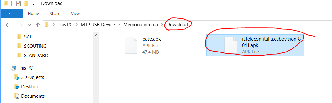 NOTA: se il file scaricato ha come estensione .zip, rinominarla in .apk
