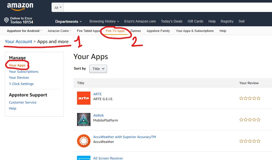 [IT: Il mio account -> Contenuti digitali e dispositivi – Applicazioni ed altro – Applicazioni per tablet Fire]