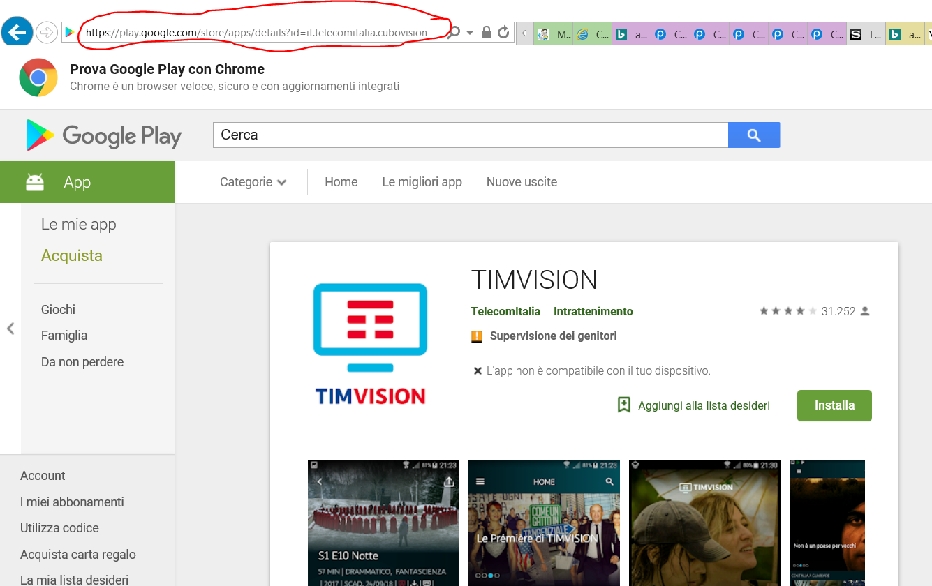 Come ho indicato nella sezione del post dedicata agli SMART TV su cui é possibile installare agevolmente TIMvision, “TIMVISION è attualmente disponibile su Smart TV e lettori Blu-Ray Samsung ed LG e Android TV Sony. … è aggiungo, sembra, anche negli ultimi modelli Philips in cui le app sono state realizzate con tecnologie tipiche di Android. Poi ci sono le chiavette tipo Google Chrome e Firestick Amazon ecc … Per il primo l’app TIMVISION c’è nel suo Store ed é quindi installabile e, per il secondo, dovrebbe essere presente a breve … Nota che, anche se le tecnologie sono simili tra i diversi Video Box, smart TV, chiavette Android, sono comunque necessarie piccole specializzazioni per rendere l’app completamente compatibile con quella specifica marca … TIM ha realizzato la versione della sua app per alcuni Video Box, smart TV, chiavette Android penso secondo logiche commerciali (e.g. maggiore diffusione, accordi tra le ditte). Se uno vuole utilizzare il servizio TIMVISION (che ricordo essere gratuito per chi ha una fibra TIM) è conveniente prendere uno smart TV di una marca che abbia già nel suo Store quell’app. Diversamente deve prendersi una chiavetta o usare gli altri metodi descritti nel post…
