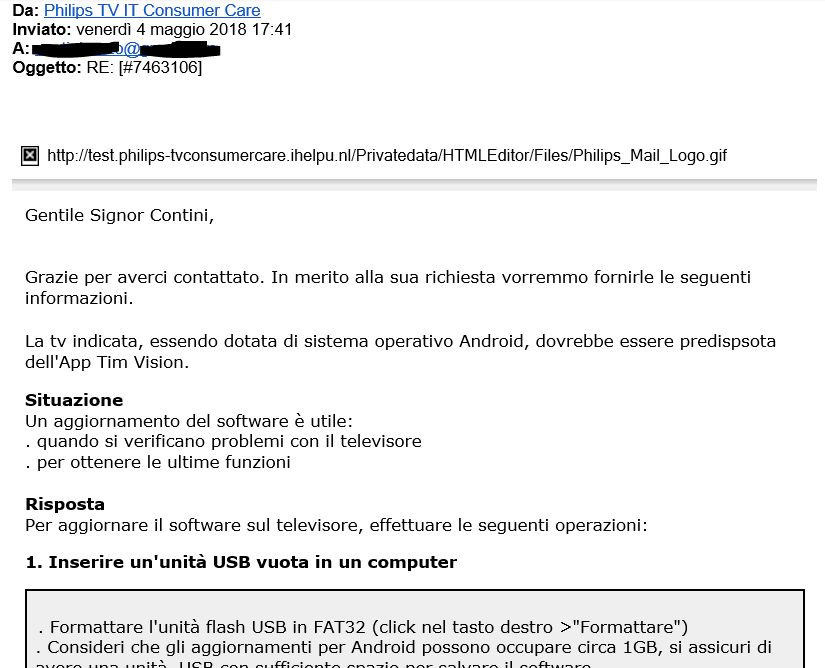 Ho provato anche a ricontattarli, per sentire una seconda versione di un diverso operatore, questa volta per chat … e così rimaneva nero su bianco 🙂