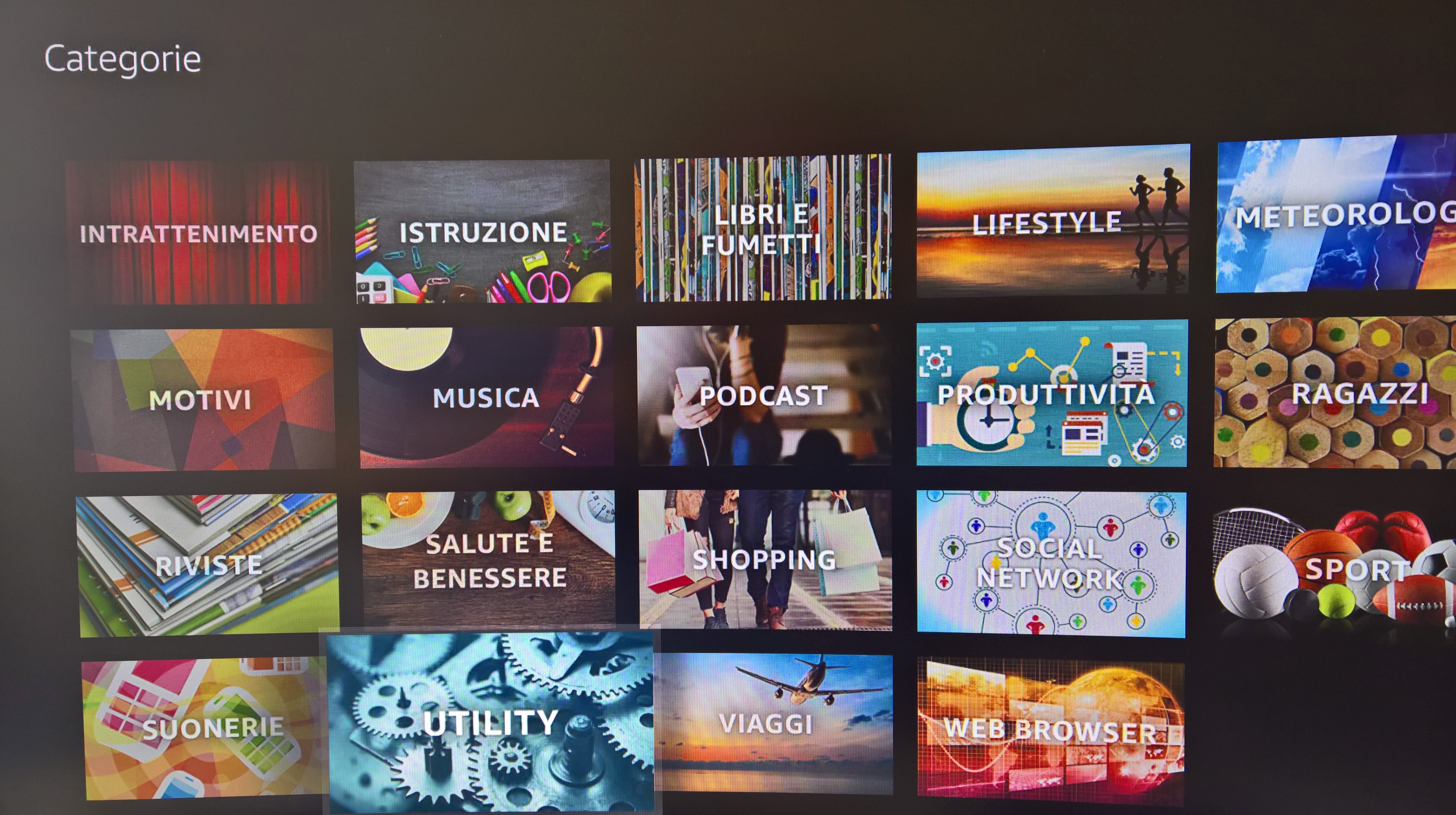 - Dalla Home del Fire TV Stick selezionare Categorie > Utility;