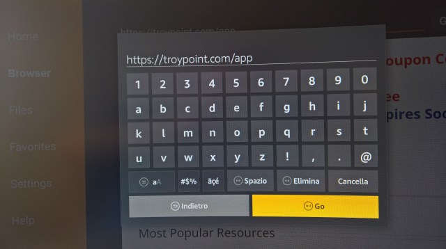 - Tornando alla Home, inserire il link http://troypoint.com/app e premere il pulsante Go.