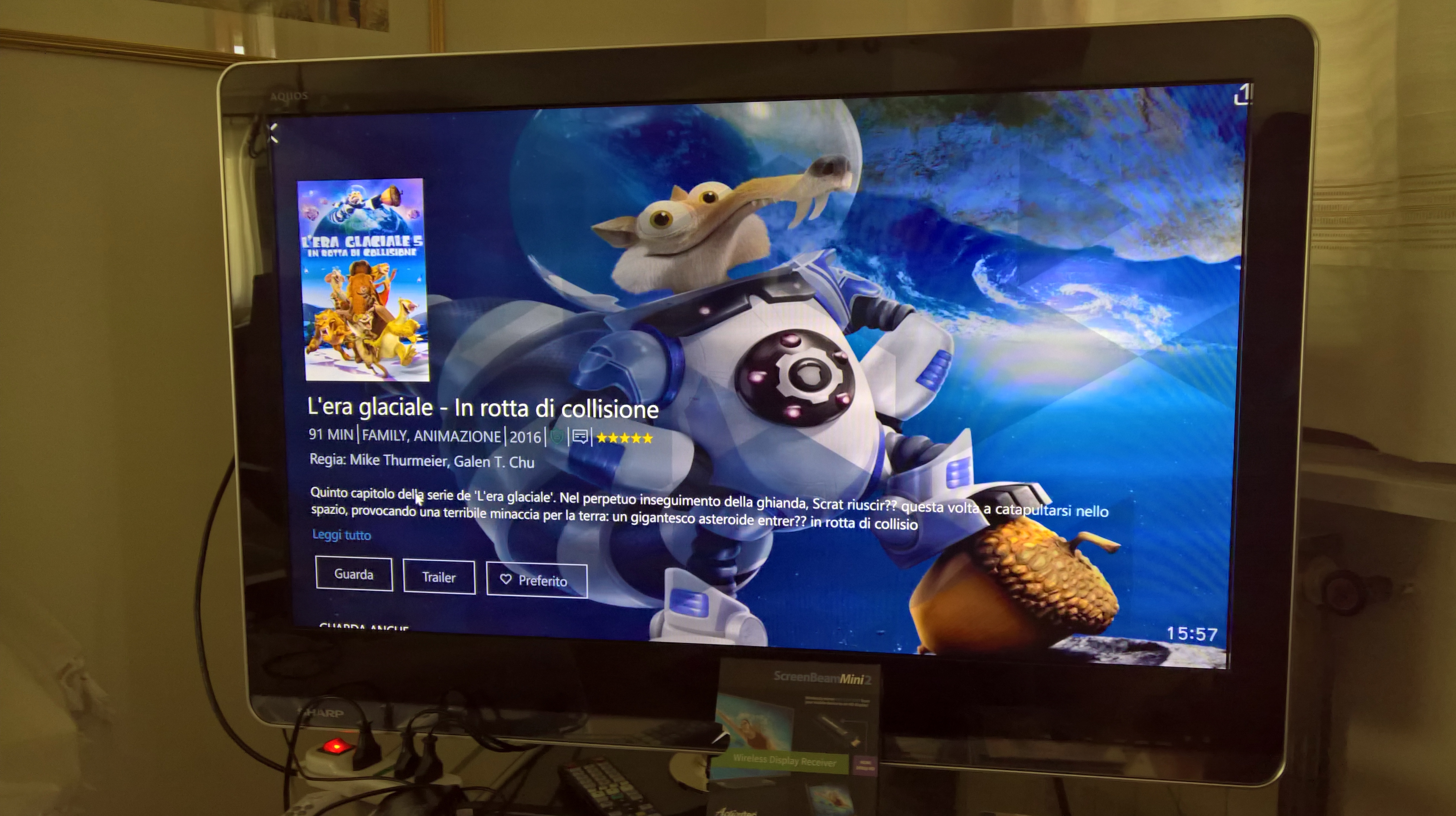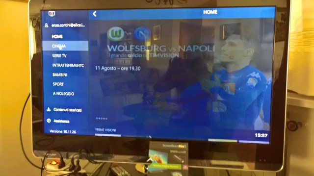 Se hai un PC Windows 10 puoi vedere TIMVISION o collegandolo alla TV con un cavo HDMI e poi duplicando il il display, oppure anche tramite la modalità Continuum collegandolo addirittura senza cavo tramite un Wireless Display Receiver. Io lo sto vedendo ora in campagna (dove non ho il telefono fisso) collegando con continuum il mio cellulare Windows 10 Mobile (Lumia 950xl), ma lo potrei fare anche con un tablet/PC Windows 10. Infatti l’app TIMVISION su Windows 10 è stata sviluppata come UWP (Universal Windows Program) per cui gira e si adatta a tutti i dispositivi Windows 10 e funziona anche nella modalità Continuum tipica di quel sistema operativo multipiattaforma.