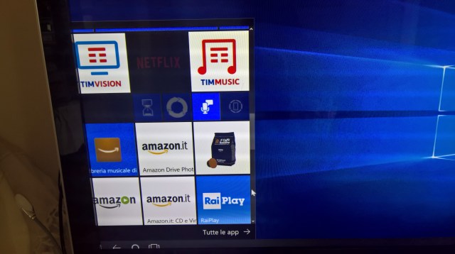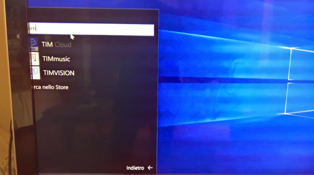 Ricerca nella pagina di Start della tile relativa all’app TIMVISION (si noti che la tile di NETFLIX è disabilitata con Continuum perché, diversamente dalle app di TIM, non è stata sviluppata come UWP