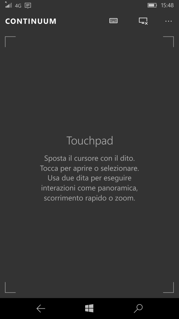 Dopo essersi connesso al dongle, lo smartphone Windows 10 Mobile fornisce una modalità di interazione tipo touchpad